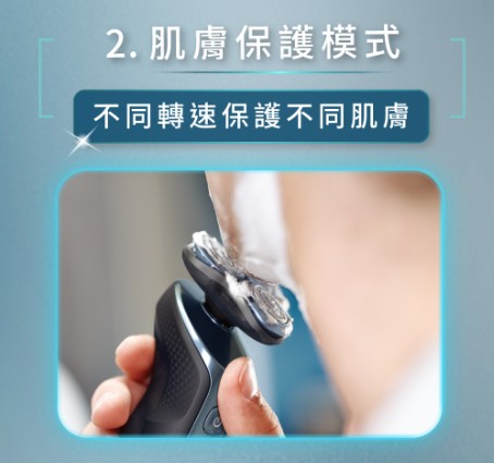 可依個人肌膚敏感狀況調整刀頭轉速,降低刮鬍對肌膚的負擔
