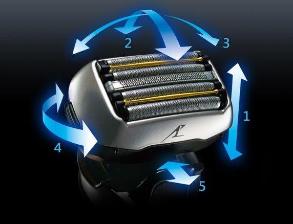 針對下巴鬍鬚的馴服刀網(2、4)及超薄終結刀刃(1、5)用兩種不同薄厚的內外刃達到刮除同時保護的效果。