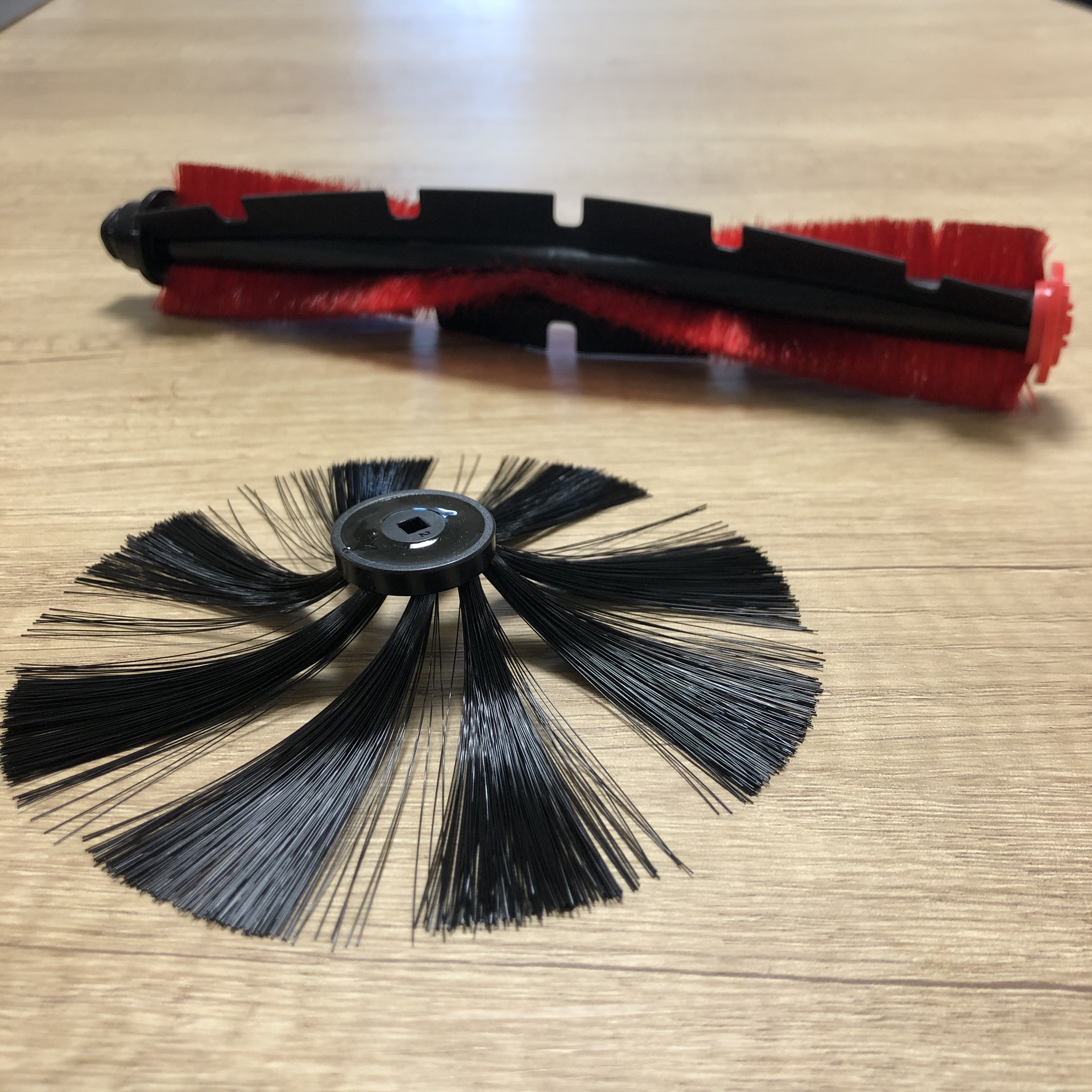 磁吸式的八爪邊刷,極度前置,搭配21公分滾刷,掃除角落髒污更有利。滾刷材質是超寬纖維毛刷搭配橡膠板刷。