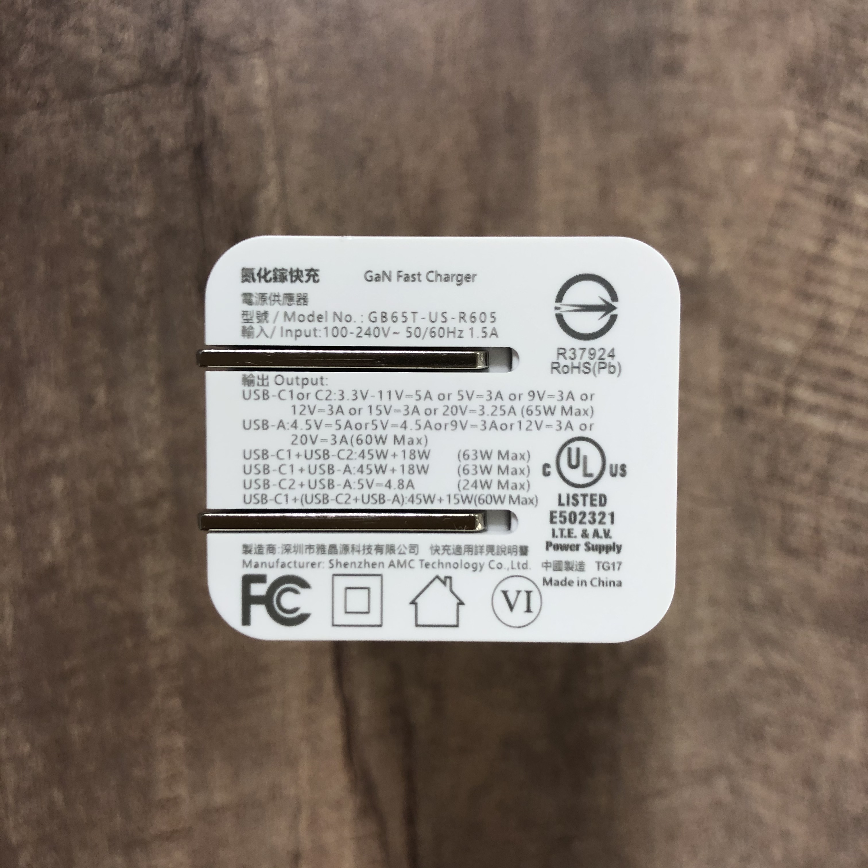 以充電器65W輸出功率,在不同孔使用狀態下,充電器的動態檢測技術,可以自動判別,不同輸出孔,應該輸出多少瓦數的功率。