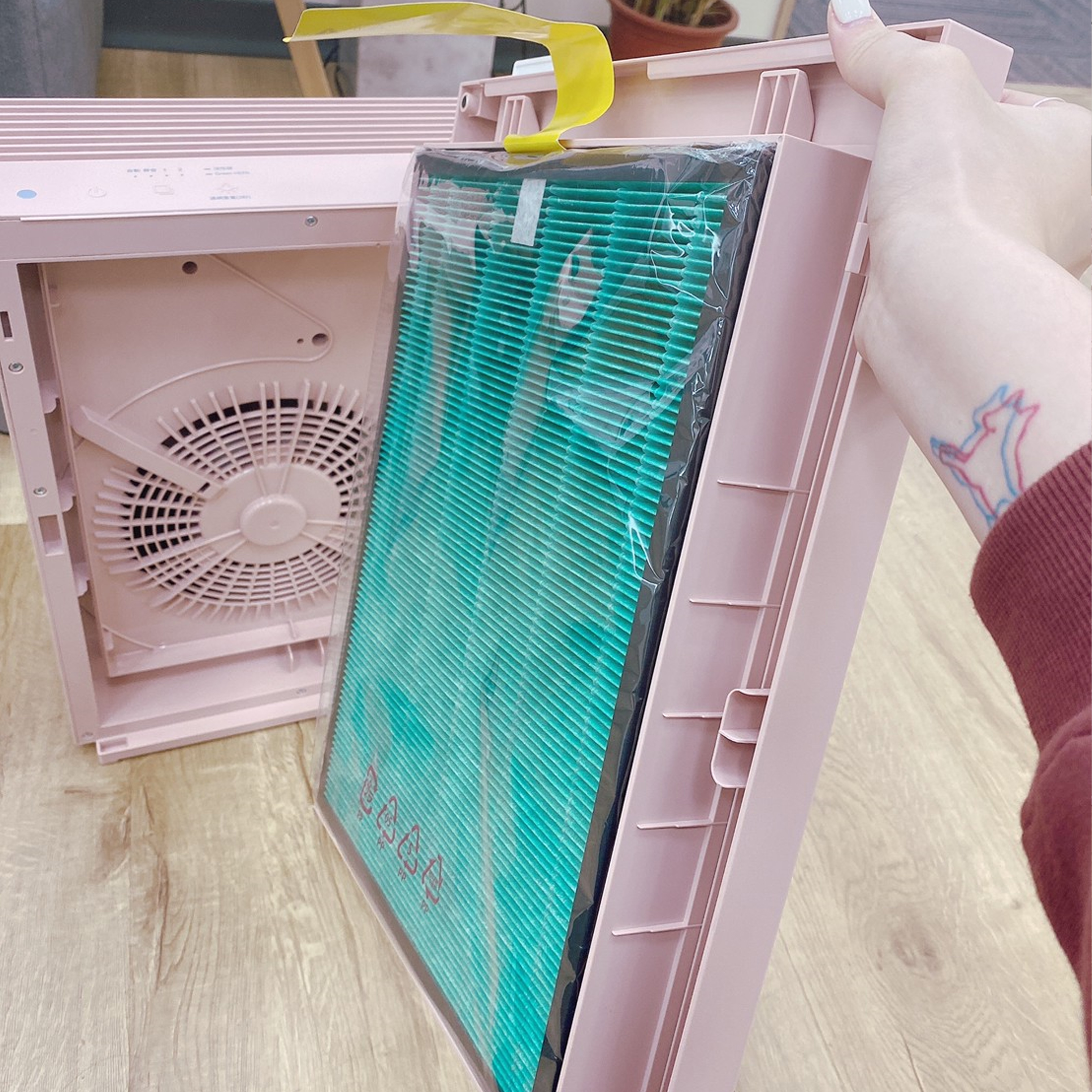 如果想要更換濾網,3片濾網卡在前蓋的設計可以讓灰塵不飄落,大大降低過敏源四散的機率,避免二次汙染。