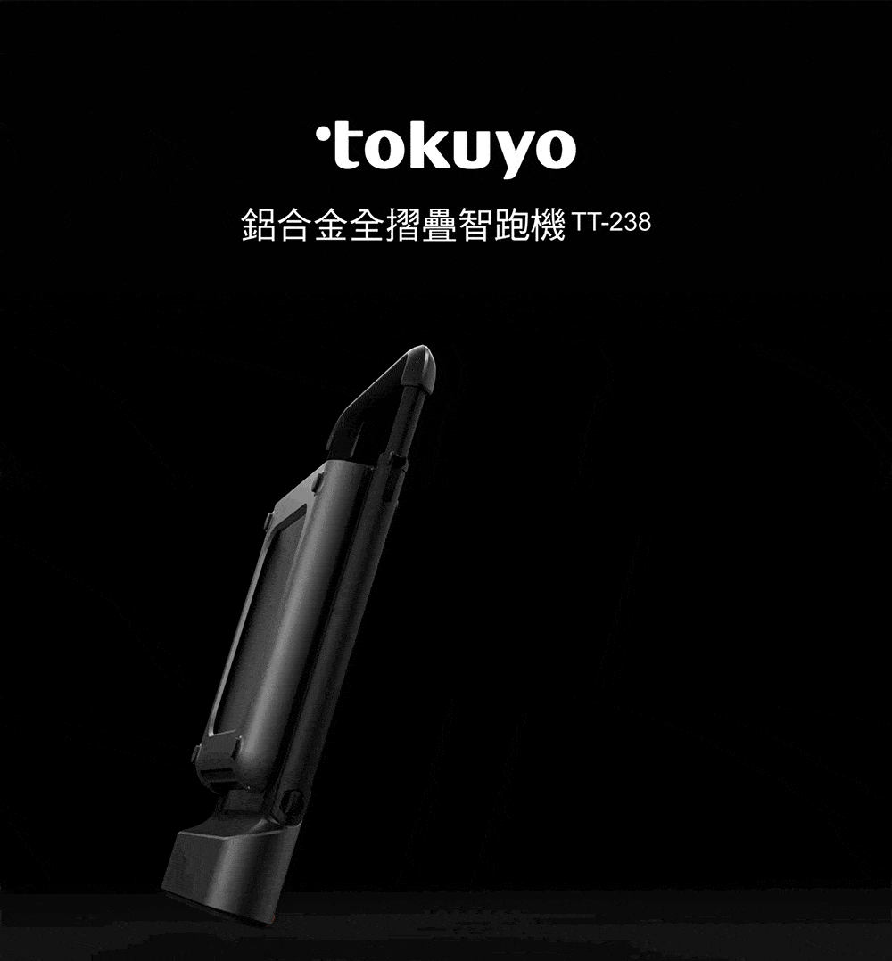 tokuyo 全摺疊智跑機 TT-238,擁有大面積跑道,摺疊後只需要15公分寬的收納空間,兼具實用性與收納性,讓你在家也能輕鬆滿足運動需求。