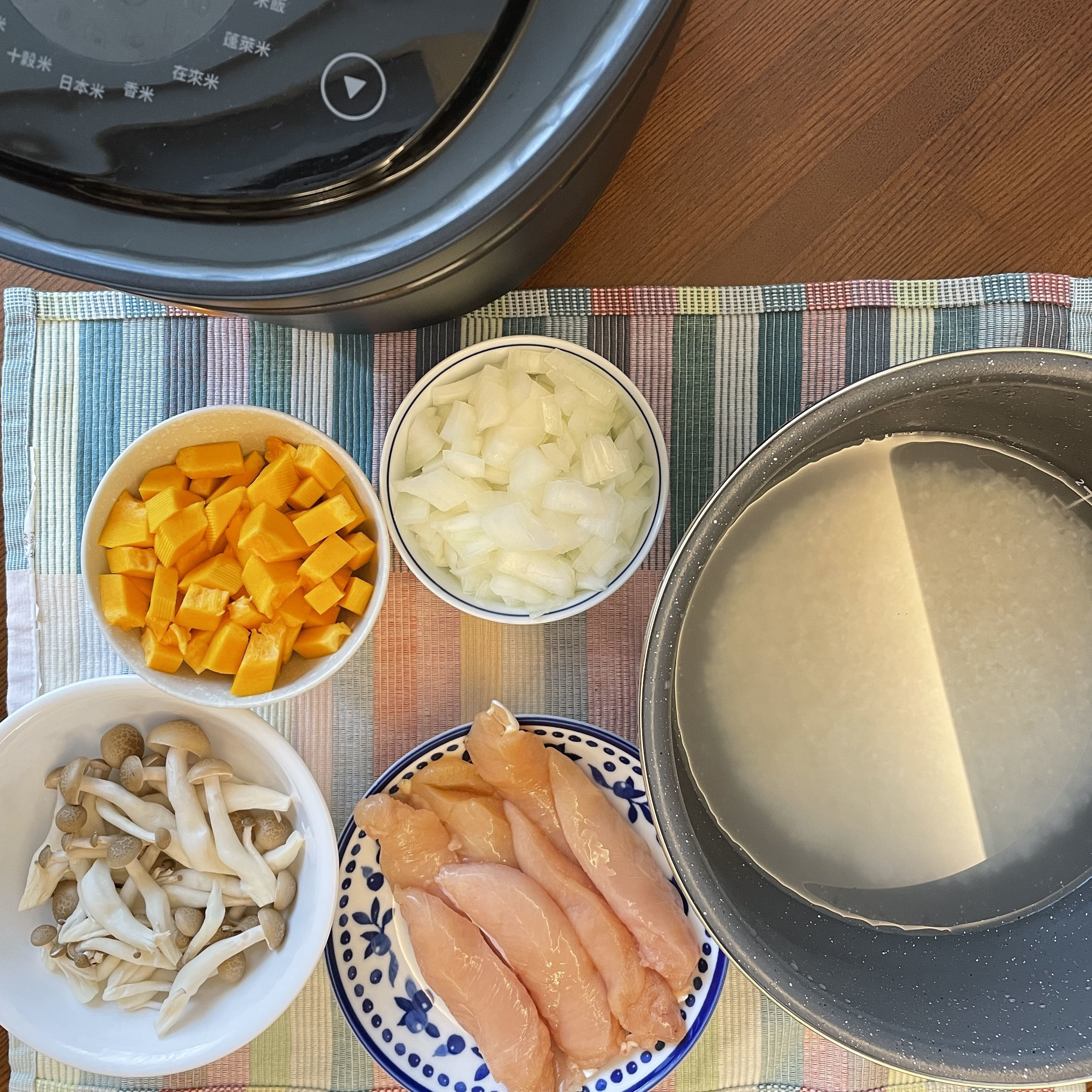 ▲將雞肉、鴻喜菇、南瓜和洋蔥切妥