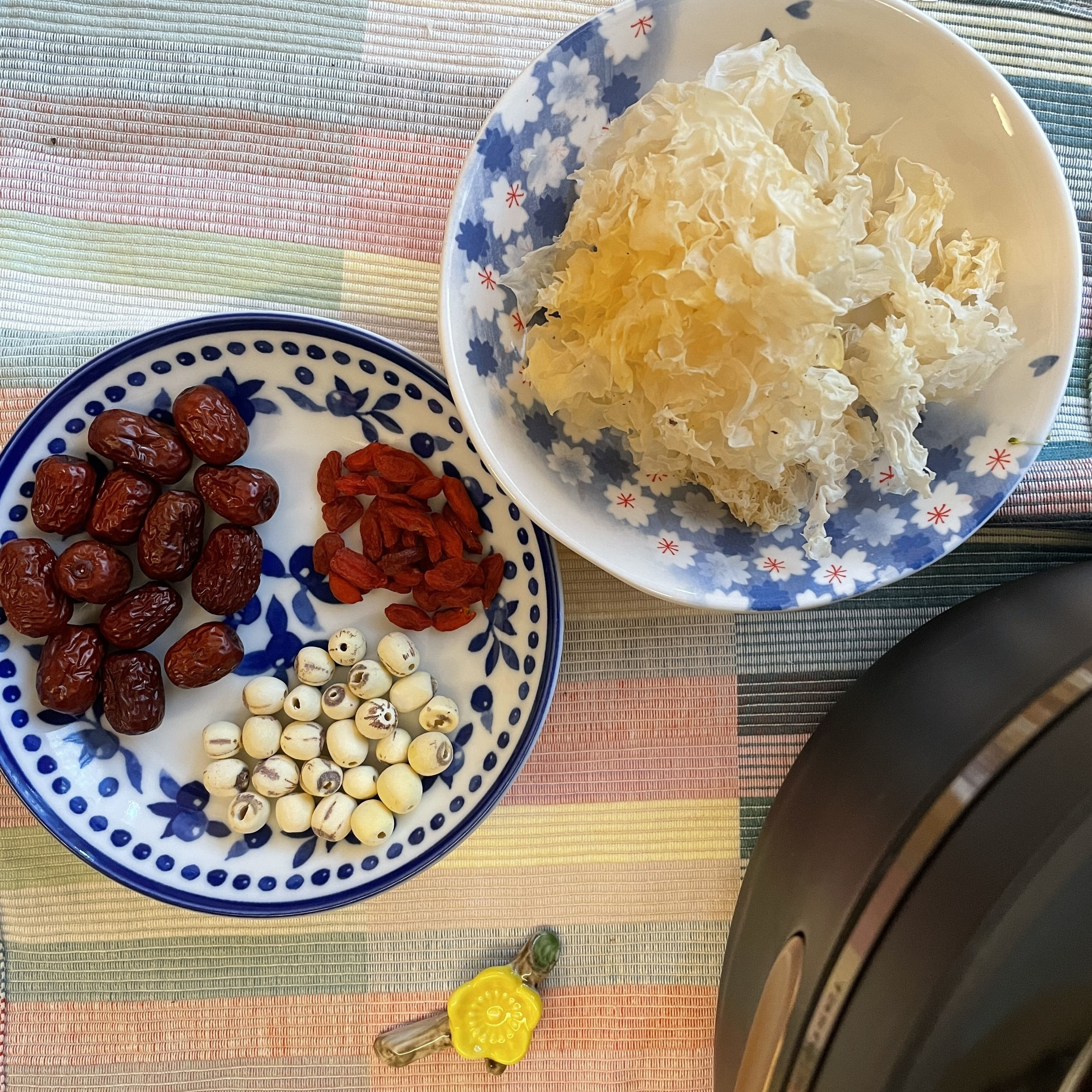 ▲備妥白木耳、紅棗、蓮子和枸杞