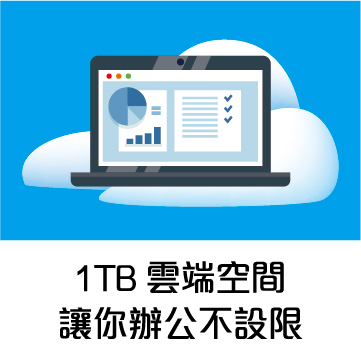 訂閱Microsoft 365 就擁有1TB OneDrive 空間,雲端空間讓你辦公不設限。