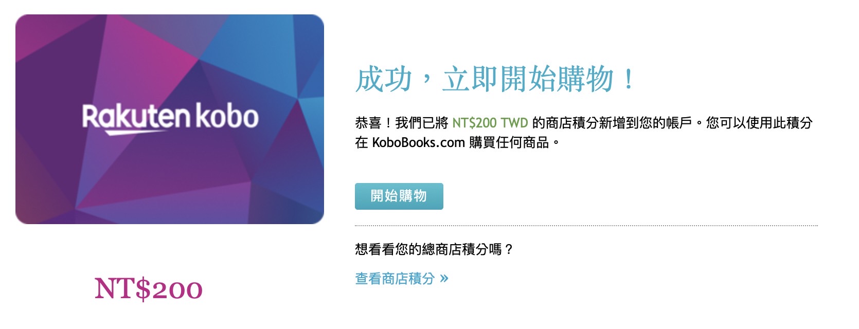 活動獎項:Kobo禮物卡$1000($200序號連結*5組),共抽14名。