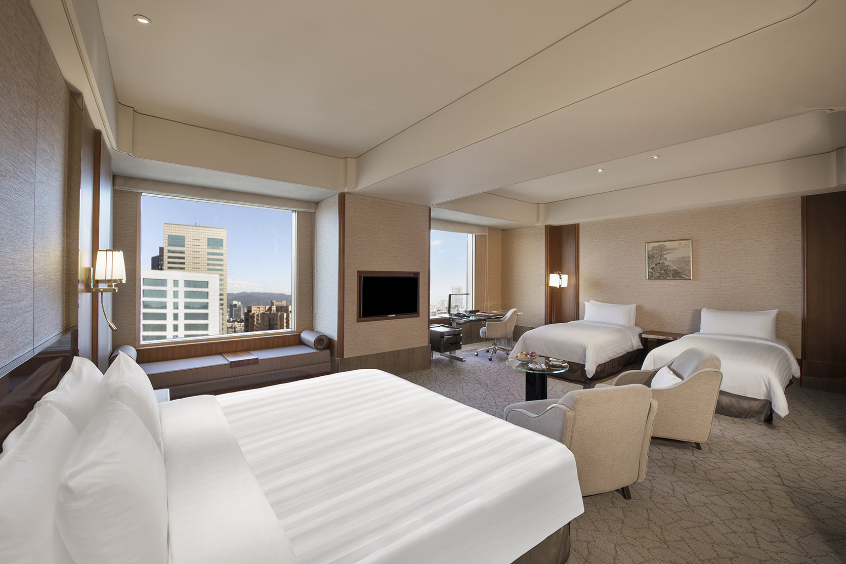 特選尊榮家庭客房擁有大型觀景窗,可欣賞敦南林蔭大道的璀璨風情與城市美景。寬敞的空間備有一張大床和兩張單人床,適合與3-4位家人親友同遊入住。