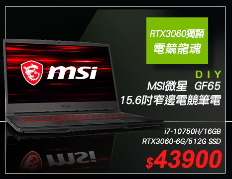 MSI15.6吋黑色電競筆電 i7-10750H/RTX3060